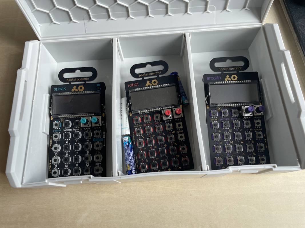 基盤むき出しのポケットオペレーターは、デリケートすぎて持ち歩きにはちょっと抵抗がある、そしてここ最近生産されていないのか、追いついていないのかはわからないが、ポケットオペレーター自体が品薄になってきている印象で、ちょっとプレミア感の匂いがしてきているから余計に大切に扱いたいと思い始めたのだ。 まったく高級なオモチャだぜ……