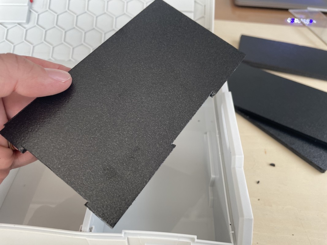 土台の仕切りができたら、あとはポケットオペレーターの形が安定するように同じ大きさのパーツを何枚も切り出してセクション内側の厚みの調整をしていく。