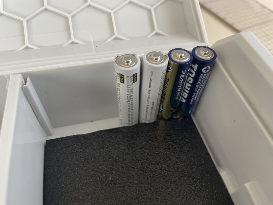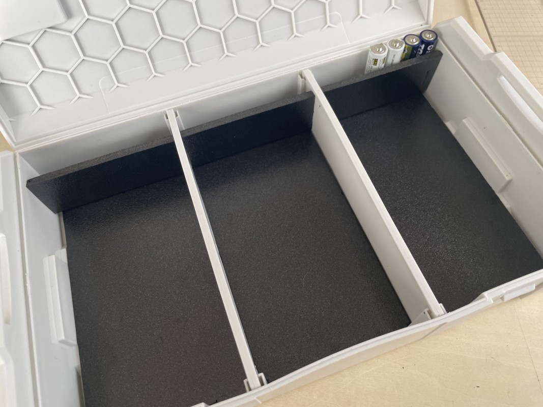 ポケットオペレーターは電源=電池なので、できることなら使わないときは電池を外しておきたい、ということでケース上部には電池とか付属品を保管できるスペースを確保してみた。