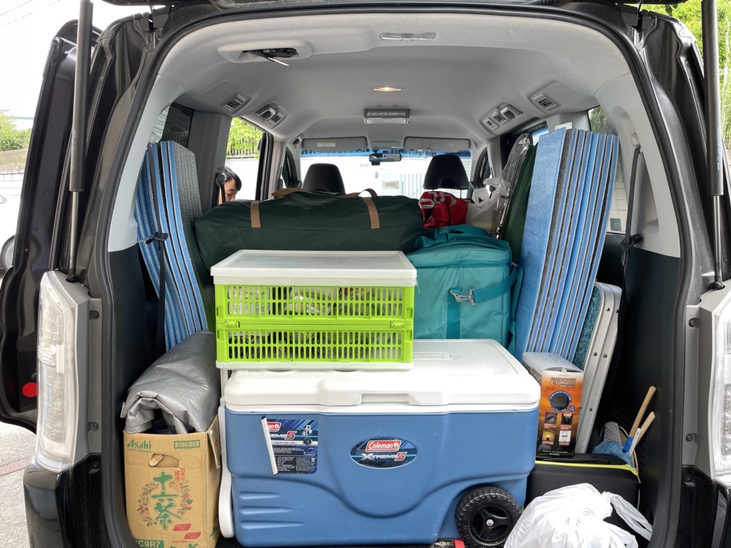 毎回同じような写真を載せているのだが、自分なりに成長していると思っているのは、この積み荷のレイアウトである、現地へ着いた時に一番最初に使用するアイテムが一番手前に来るよう、なおかつ隙間なくトランクに効率よく入るようにしなくてはならない、そして何より運転の妨げになってはいけないいう3つの課題をなんなくクリアできるようになってきている自分を褒めてやりたい。