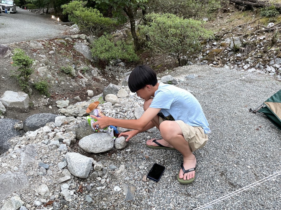 サイトの端っこでなにやらゴソゴソと並べている息子。