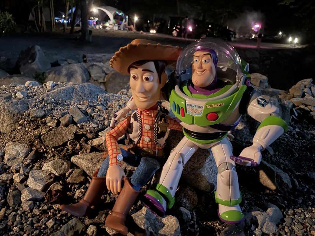 最近ディズニーにハマりまくっているらしいが、キャンプ場にこんなデカいフィギュアを持ち込んでオモ写の撮影をしていたのである…