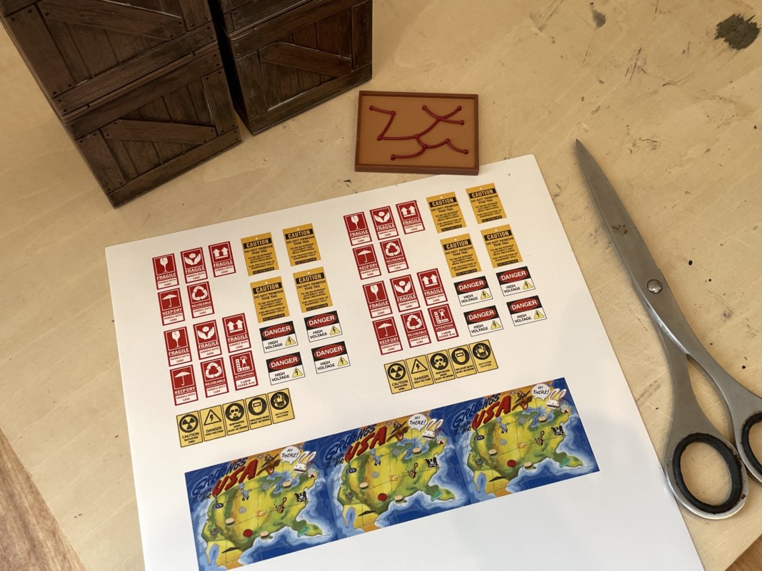 木箱ってそもそも輸送する際の外箱として使用されることが一般的なわけで、大体が何かしらのメッセージのプレートやステッカーが貼ってあるほうが自然ではないだろうか? ということでPCでサイズを合わせてステッカーを作ってみた。