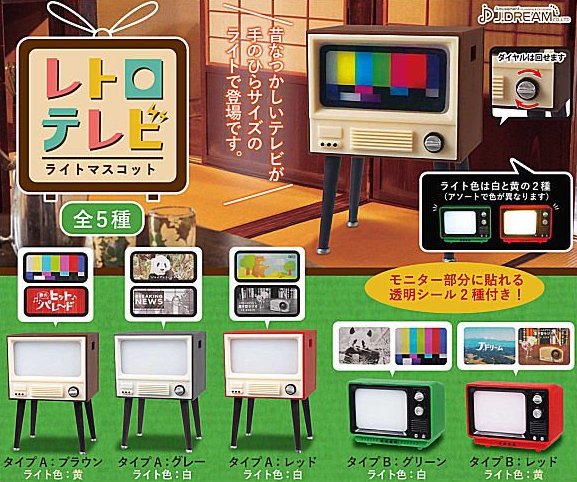 まず出会ってしまったのはガチャガチャのレトロテレビ。 手のひらサイズのレトロテレビで電池内蔵でモニターが光るギミックがついている。