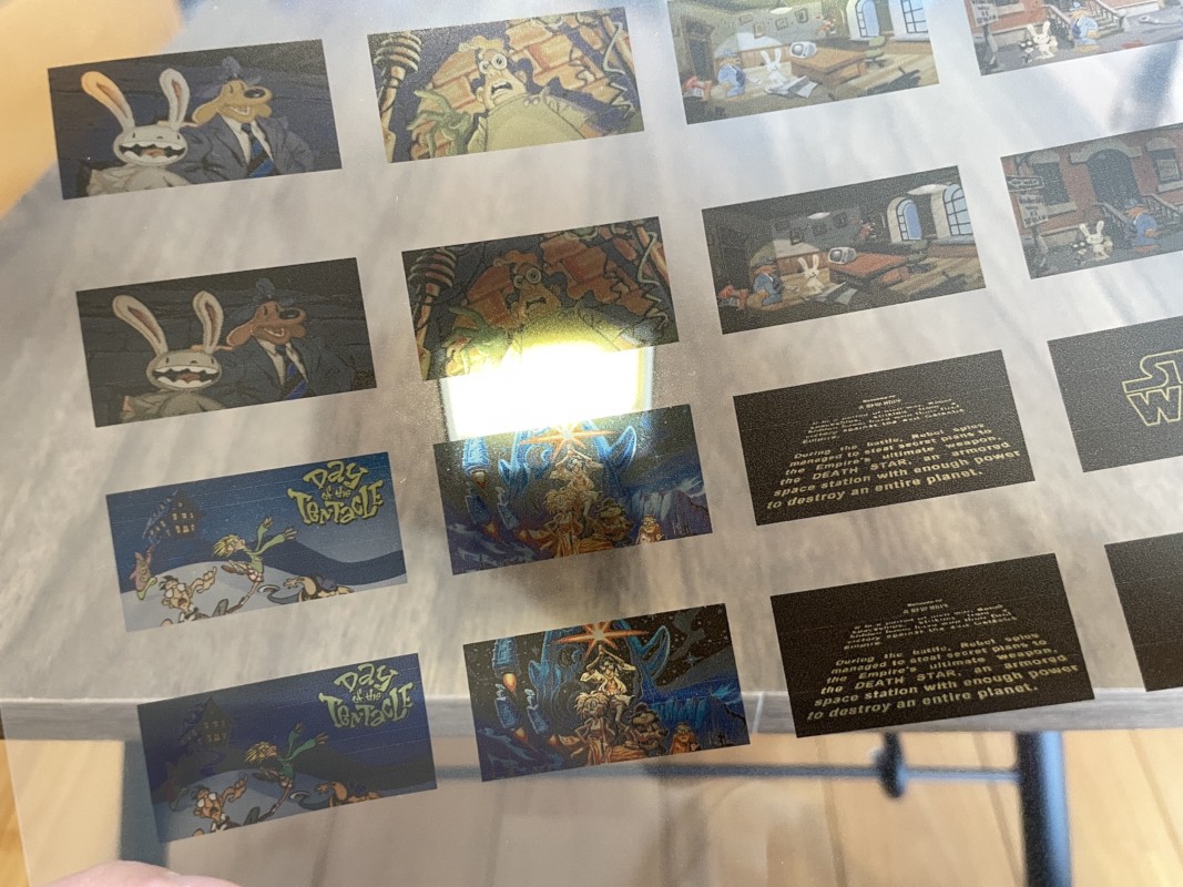 このテレビニはモニターに貼れる透明シールが付属しているのだが、まぁ当然のようにそれを使わず…SAM&MAXの世界を引き出すためにオリジナルで画面を作ってみた。