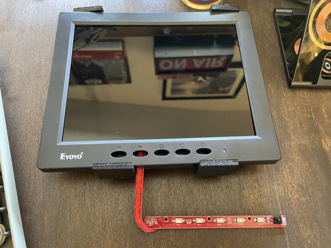 一番肝心なモニター部分。 どれくらいのモニターサイズがベストなのかイマイチよくわかっておらず、出品者へアドバイスを求めたところ「8インチのベゼル太めを使っていました」という有力な情報をいただき、ギークマスターの親父に8インチモニターがないか確認したところ「あるよ」とのことで、さっそくもらってきた。
