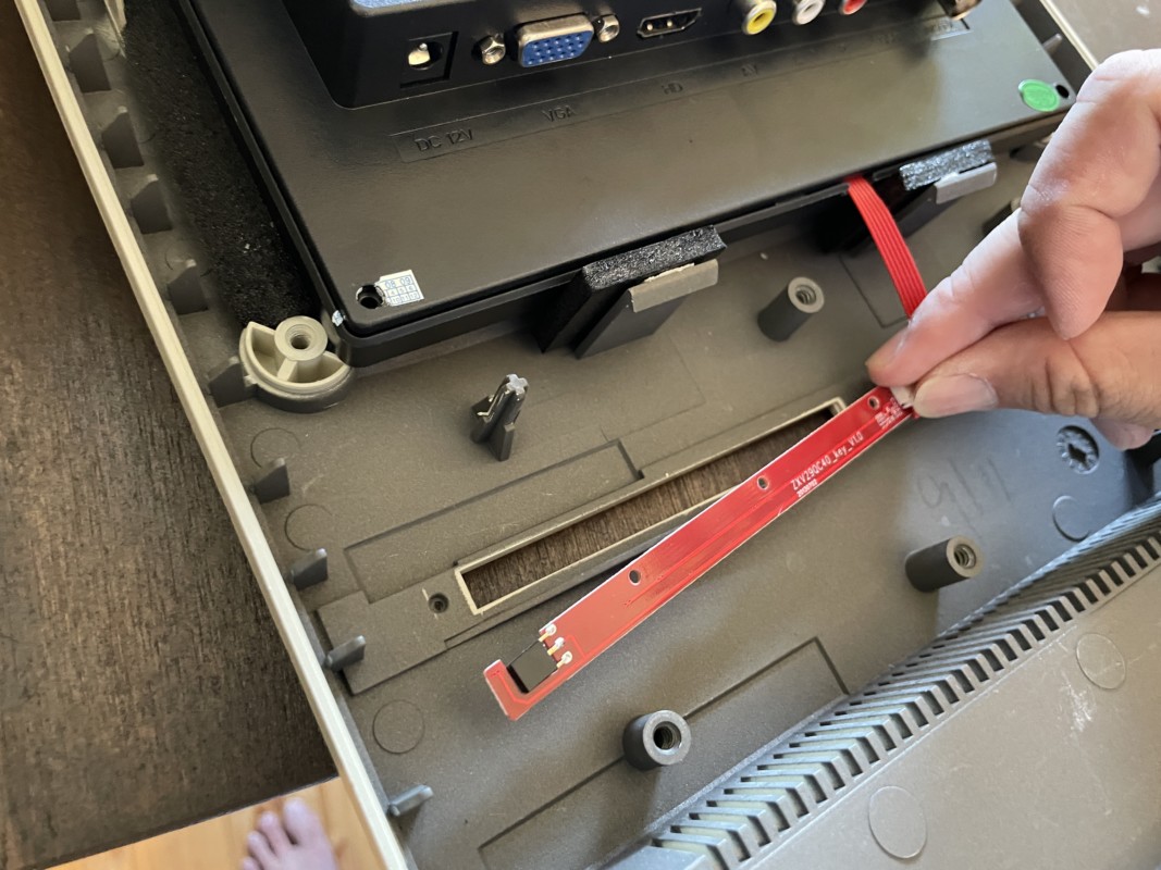 ↑ベゼルの下に操作ボタンがあって、ケースにはめ込んでしまうとボタンが押せないため、一旦モニターから取り出してみた。