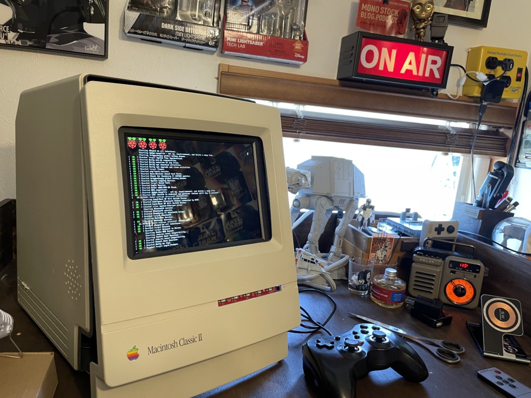 スターウォーズのゲームが起動したということである…詳しく語っているととんでもない文字量になってしまうのだが、ざっくり言うとラズベリーパイという小型のPCにレトロパイというOSをインストールしてゲームを起動させて画面に出力させているといった仕組みである。