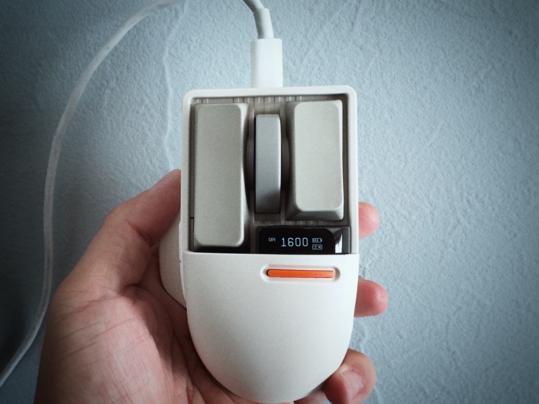 右クリック下にある黒いパーツがまさかのデジタル表示で、バッテリー残量や接続状況などを表記してくれていて、レトロなのに近代的で僕の超ツボである。
