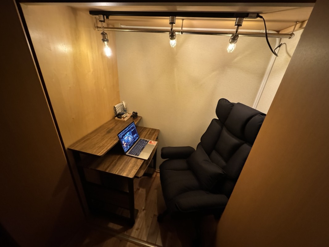 そして、クローゼットの扉を閉めると、完全な密室空間が生まれるため、ものすごい集中力で仕事に専念することもできる。