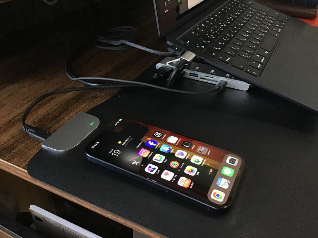 ワイヤレスに対応したスマホ・iPhoneを置いておくだけで勝手に充電しておいてくれるので、大変ありがたいのだ。