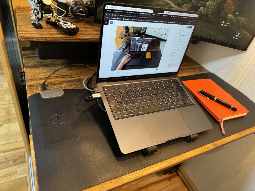 そして、このデスクマットのちょっと嬉しい機能が、ワイヤレス充電ができちゃうところ。