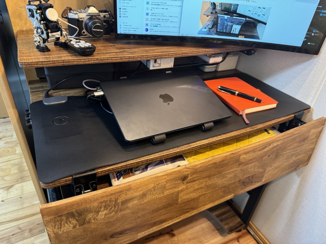 こんな感じで、使う時は引き出して使わない時は奥に引っ込めておけるので、これまた作業効率が上がることは間違いない、はず。