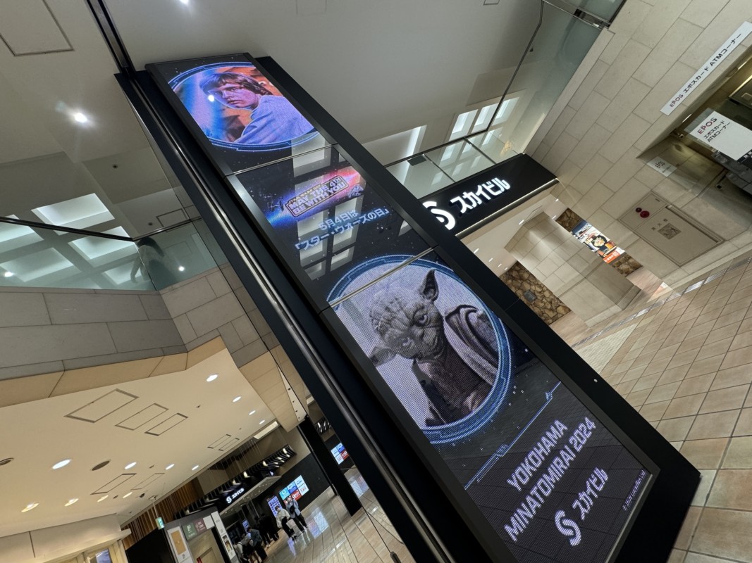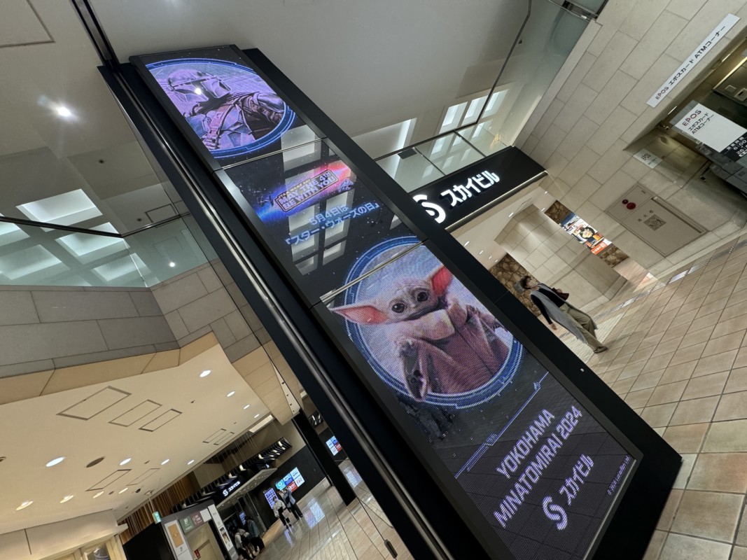 続いてスカイビルへ、B2の横浜そごうの隣には大きなデジタルサイネージが流れ、1Fにはフォトスポットも。