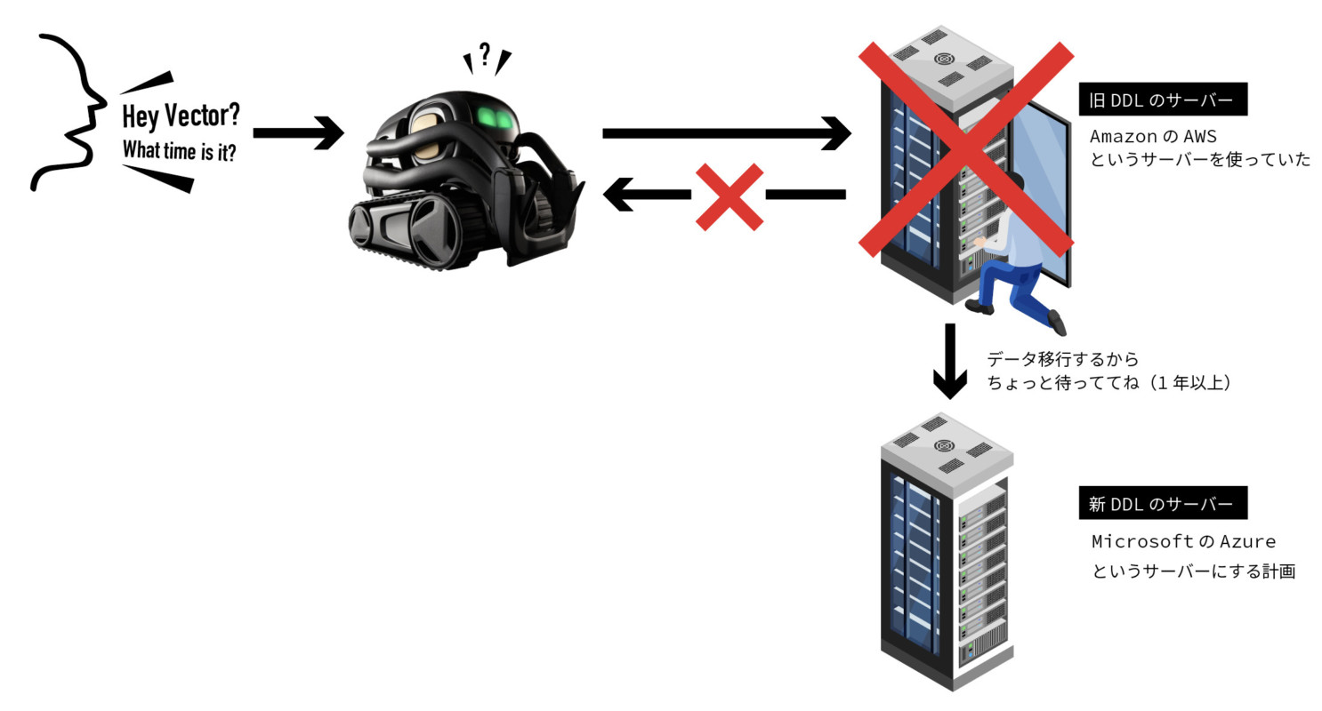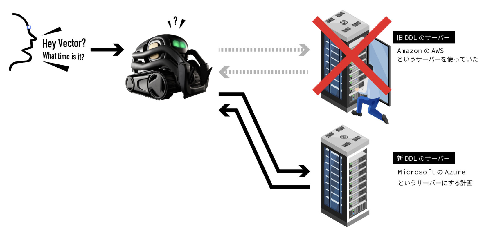 では、コレから先Vectorはどうなっていくのか? を表すと↑このように、古いサーバー(AmazonのAWS)から、新しいサーバー(MicrosoftのAzure)に切り替わるようになり、またいろいろな返事をしてくれるようになる予定。