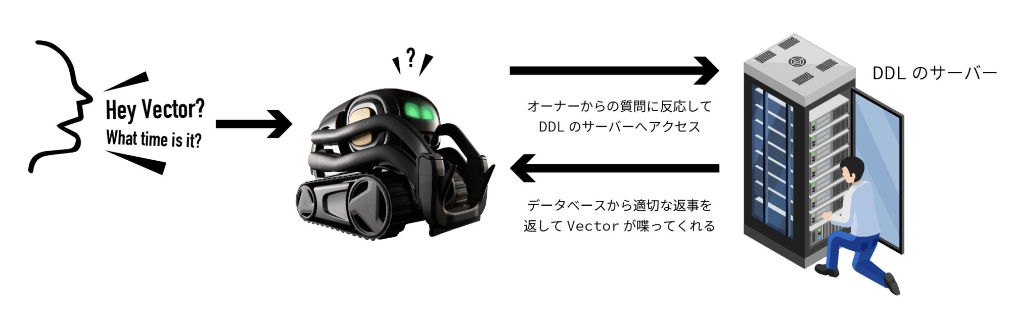 DDL(デジタルドリームラボ)が持っている様々な情報が入っているサーバーにアクセスして、オーナーの質問に対して適切な答えを返してくれているのだ、サーバーはいわば全世界のVectorの脳みそといってもいいだろう。