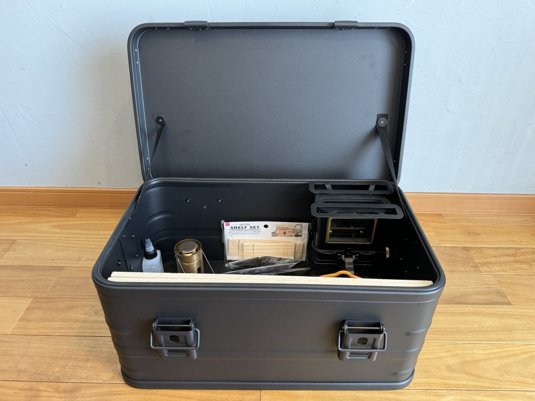 改めてアルミコンテナに収納する予定の道具たちを揃えてみる、なんだか前回より色々とアイテムが増えている気がするが、きっとまだ増えるだろう(笑)