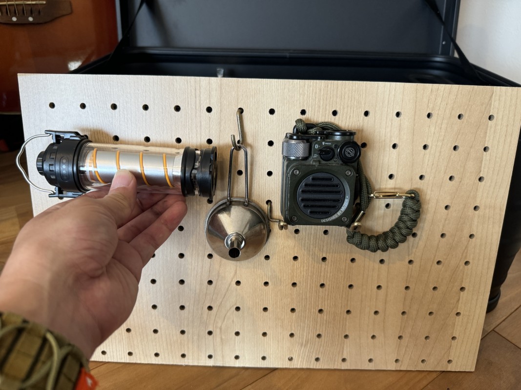 アルミコンテナのカスタマイズをブログで公開されている方々の方法を色々と試したのだが、自分のパネルに配置するアイテムの重さもあってか落ちてしまうという課題に悪戦苦闘したので失敗も含めて紹介しようと思う。