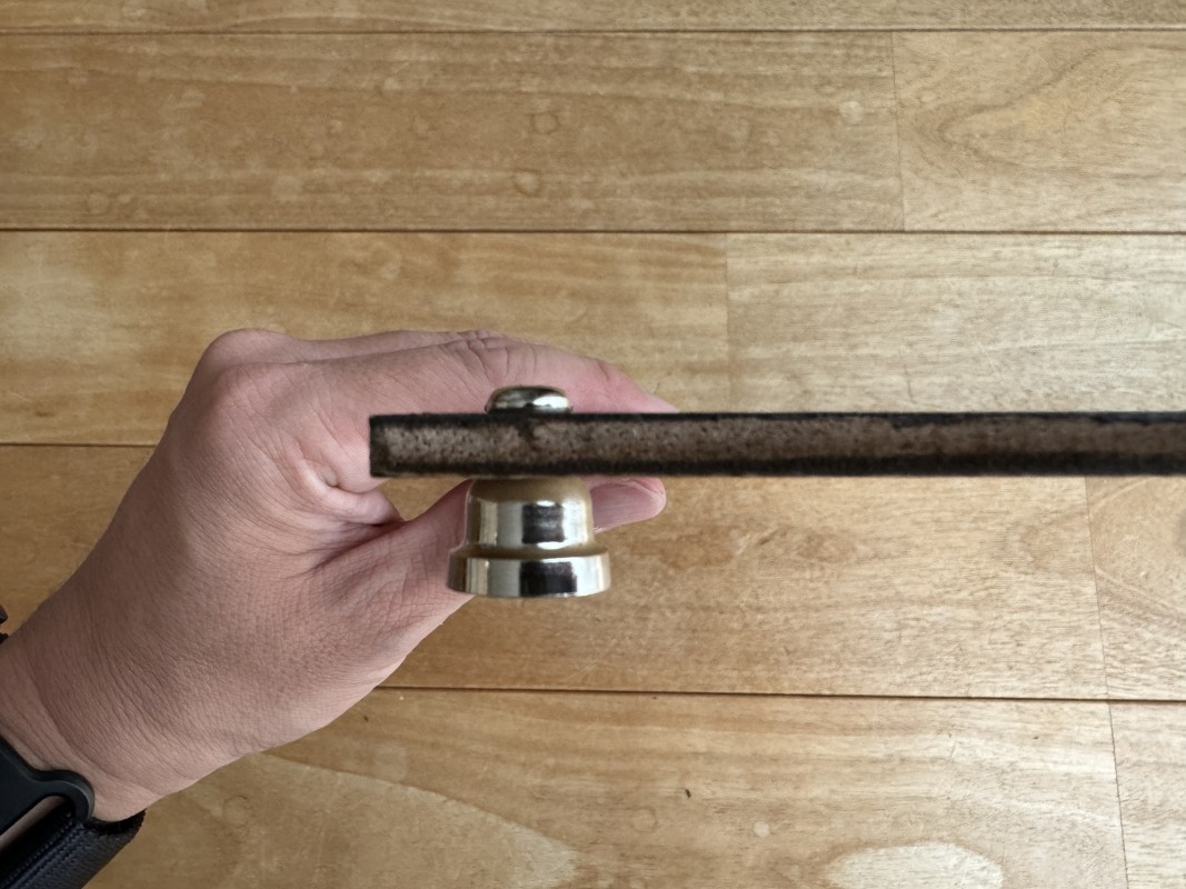 このアイアンバーもダイソーで見つけたものなのだが、なんとネジ穴の間隔がパンチングボードにぴったりと合うのだ!! もはやパンチングボード用の売り場にあってもおかしくはないと思う。