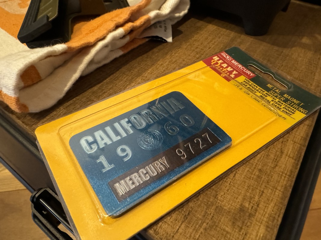 ついでに先日雑貨屋で偶然見つけたMERCURYのメタルマグネットがステキだったのでパンチングボードの空いているスペースに取り付けてみた。