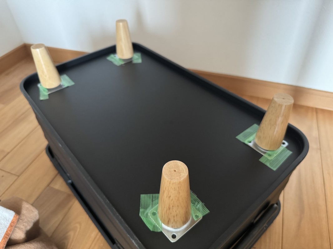 仮に脚を設置した状態で眺めていると、娘から一言「色がコンテナと合ってない…」鋭い娘だ…そういう美的感覚は僕のDNAを受け継いだのだろう(笑)