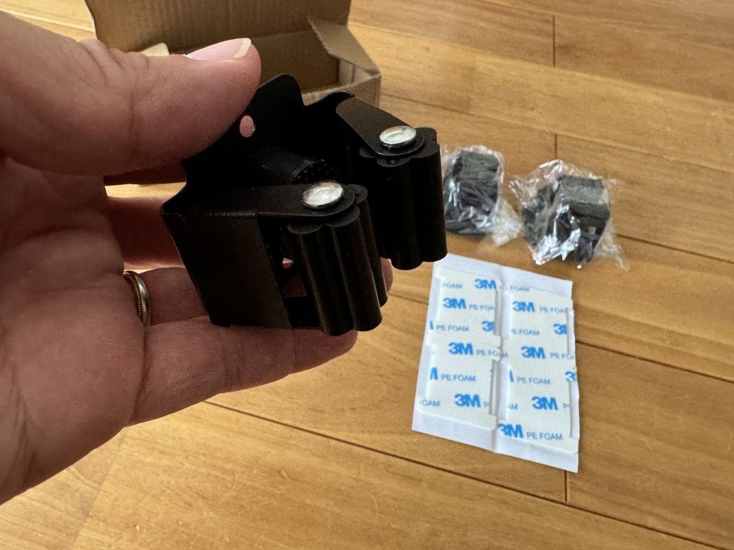 アイテムを挟むにはもともと設置されているクッション部分(丸いパーツ)が少し干渉してうまく挟めなかったため外して使用することにした。