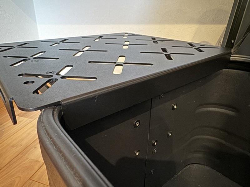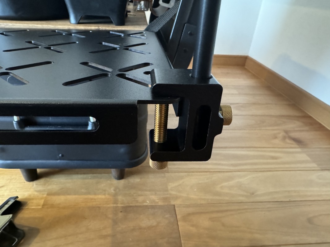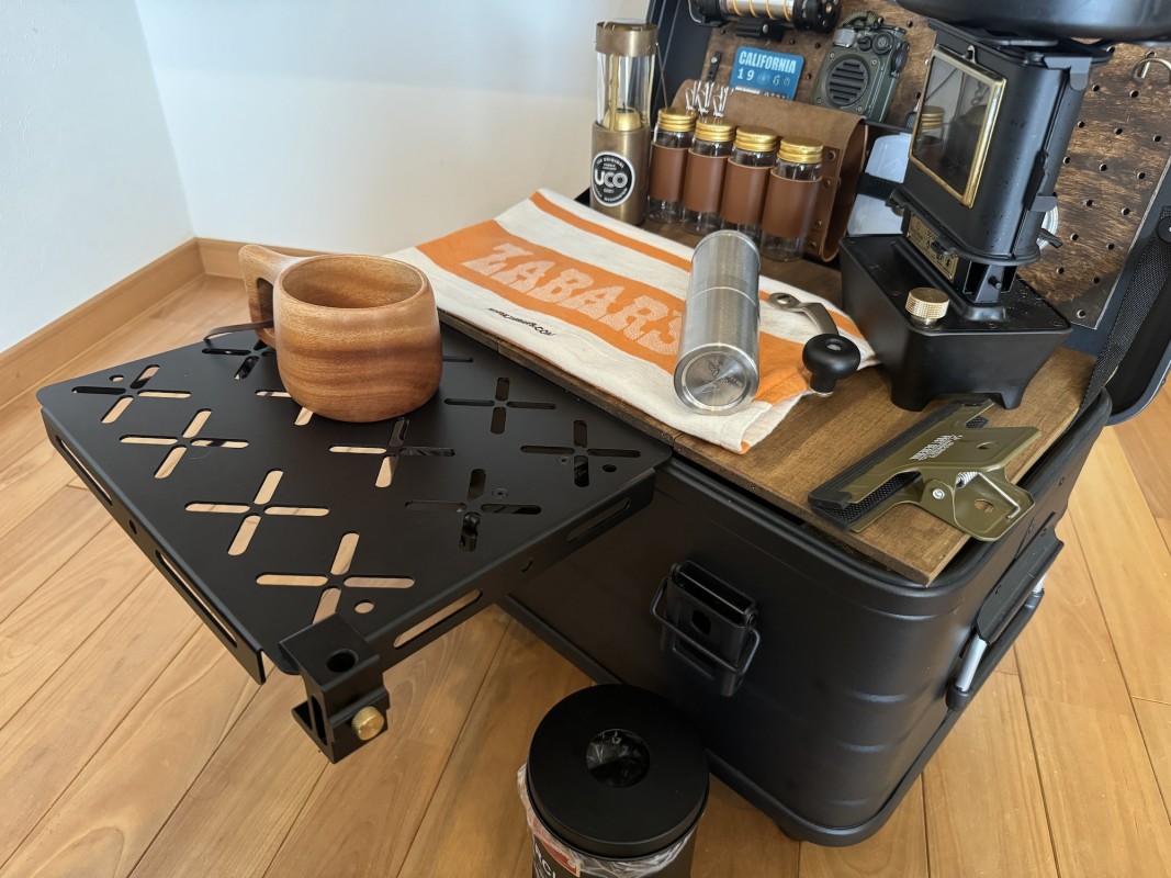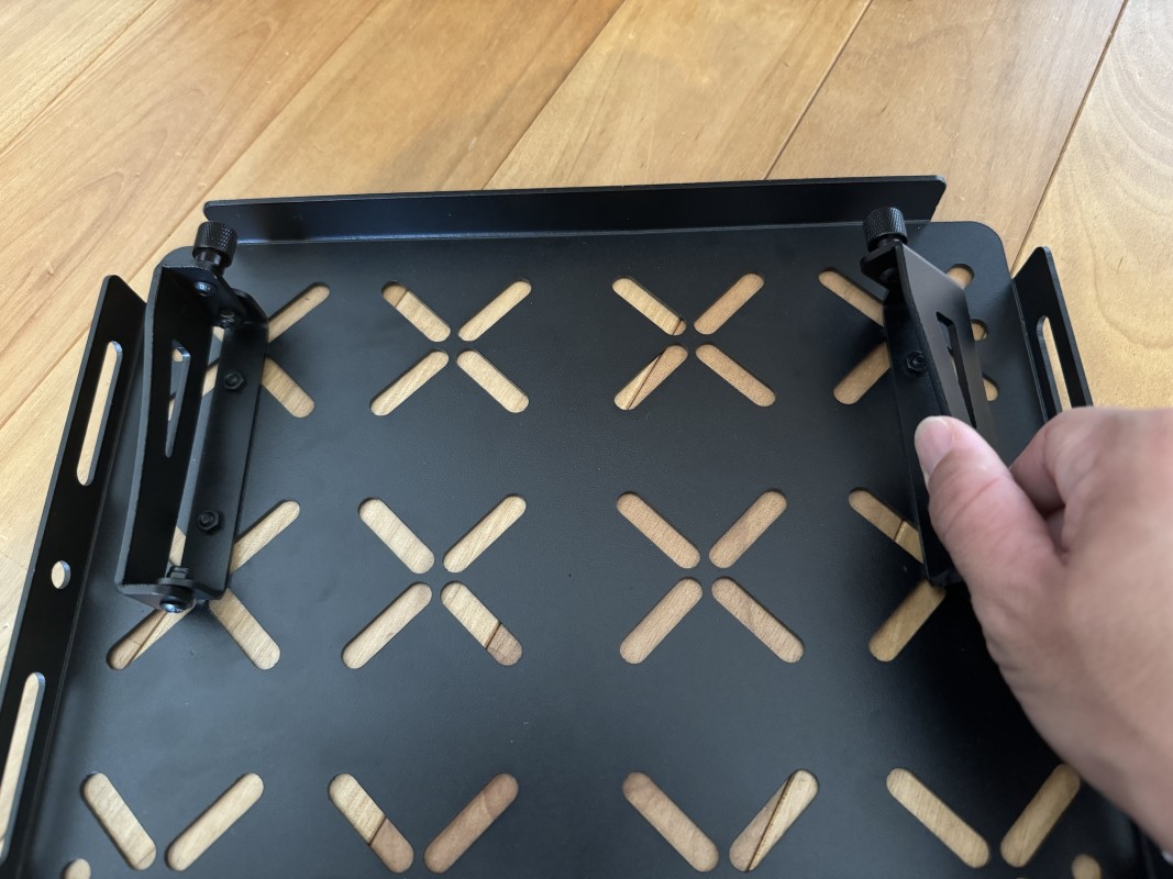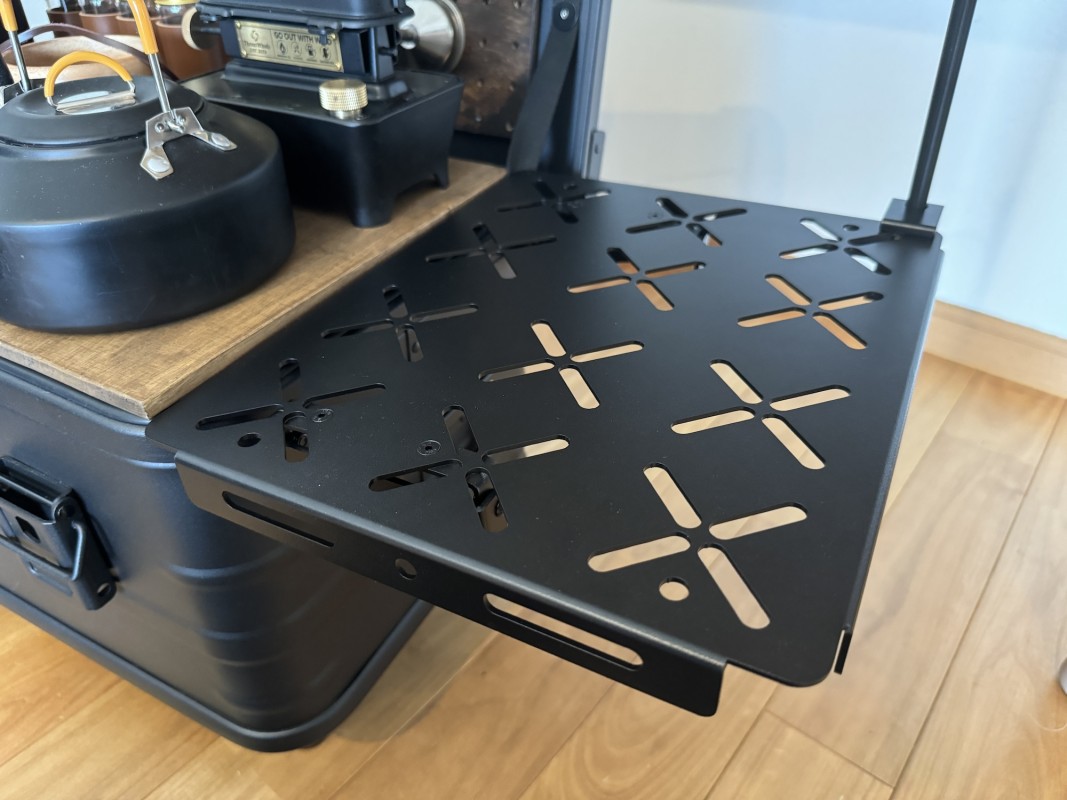 ちなみに、天板は必ずサイドに取り付けなくてはいけないわけではないので、必要に応じて手前にも配置可能、丈夫だしなかなかよくできている。