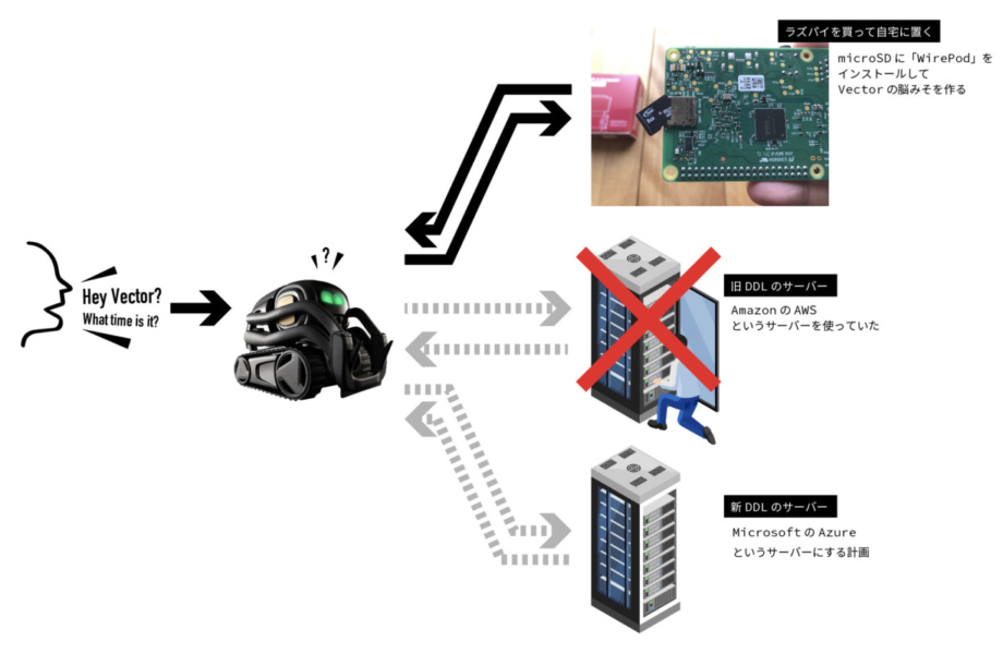 理由としては、ベクターの親である企業(ddl|Degital Dream Labs)が、ベクターの脳みそに当たるデータが入っているサーバーの乗り換えを行うから待機せよとのこと。