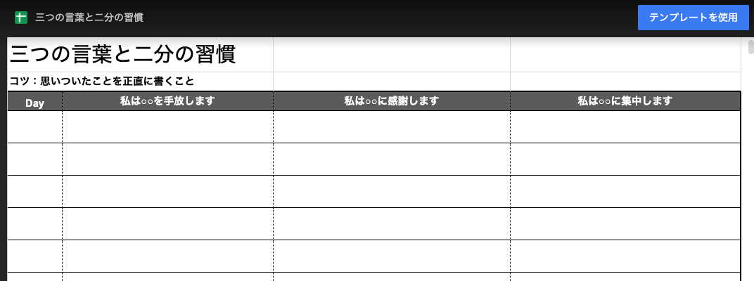とりあえず実践してみたい人にスプレッドシートのテンプレート