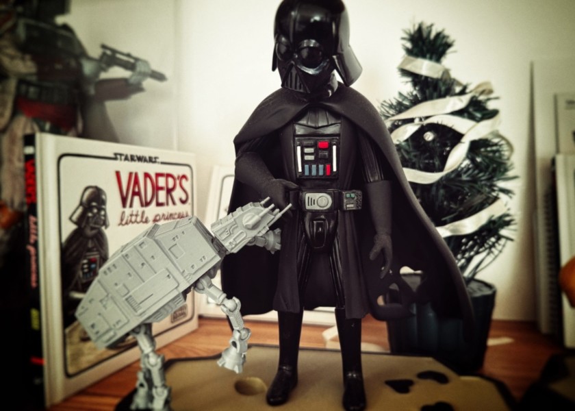 3Dプリンターで出したAT-ATが可愛すぎて、ベイダー卿の愛犬っぽくなった😂みなさま良いクリスマスを🎄