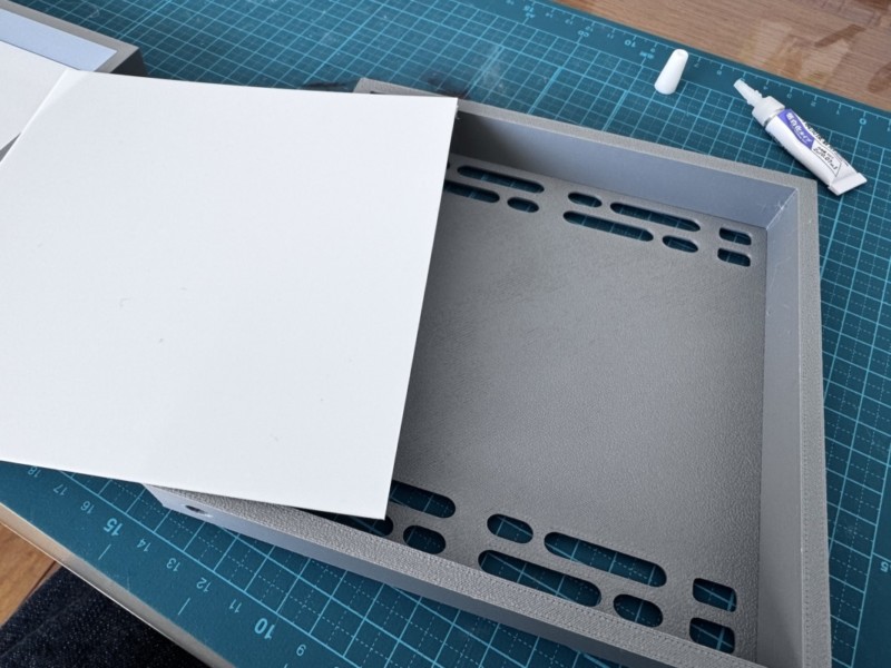 当初の計画通り、100均でも手に入るマグネットのサイズに穴を空けて、ピッタリと収まるようにしたので台座と背景がパチンと吸着する、背景は白プラ板で蓋をしているため後ろから光を当てれば映画さながらのシーンが再現できるような気がしている↓