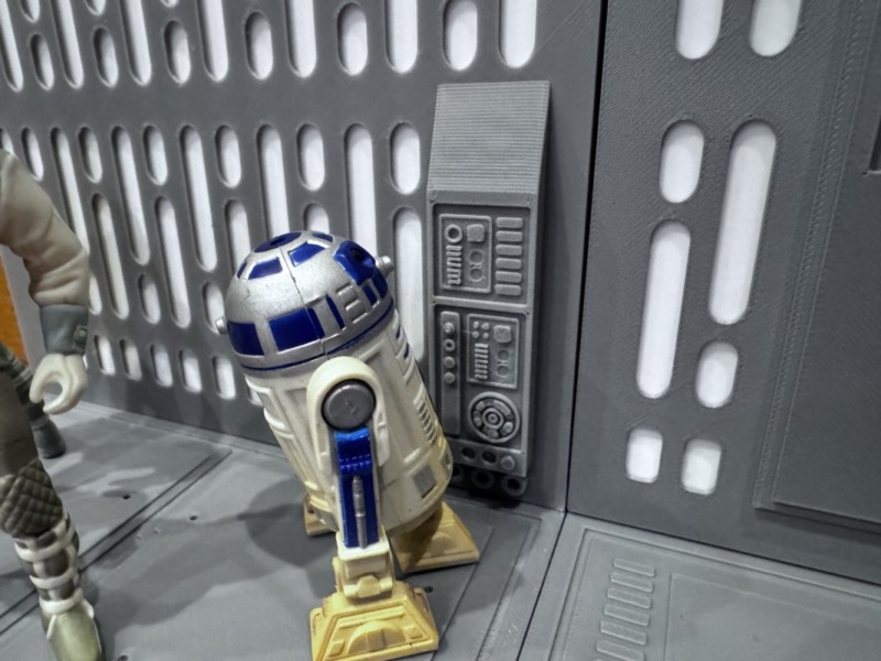 ここはスターウォーズファンなら「あっ!」と気がつくかもしれないが、R2ユニットがコンピューターにアクセスするScompLinkのプラグも再現してみた。