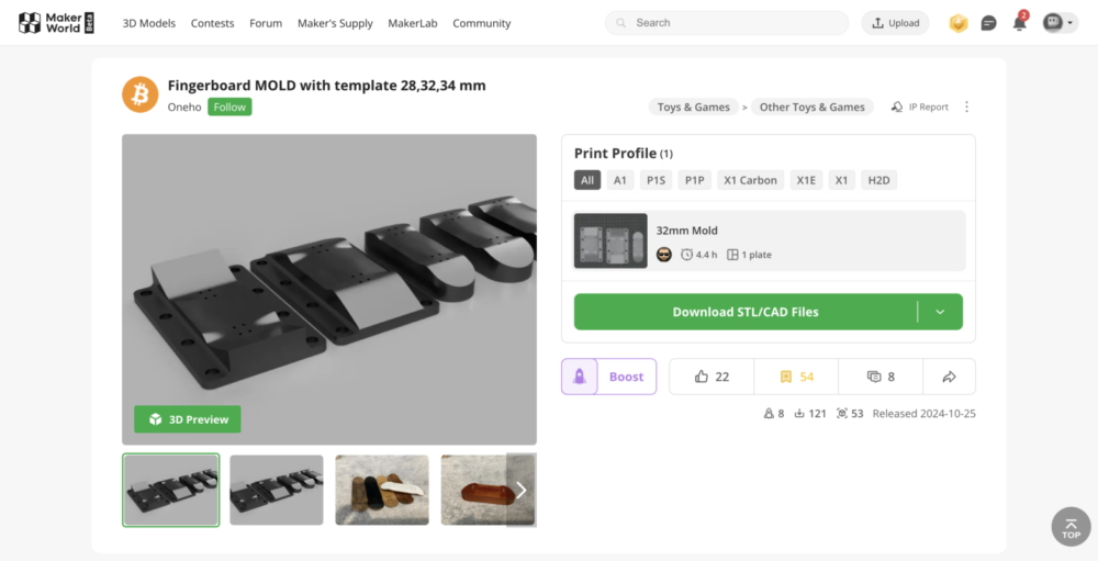 息子は中二病なので、メリケンサックやら折りたためるナイフやら、とにかく中二病が喉から手が出るほど欲しいアイテムを3Dプリンターで出力したがるが、すべて却下している(笑) ただ唯一父と子で意見が一致したのが↑『フィンガーボードのモールドテンプレート』である。