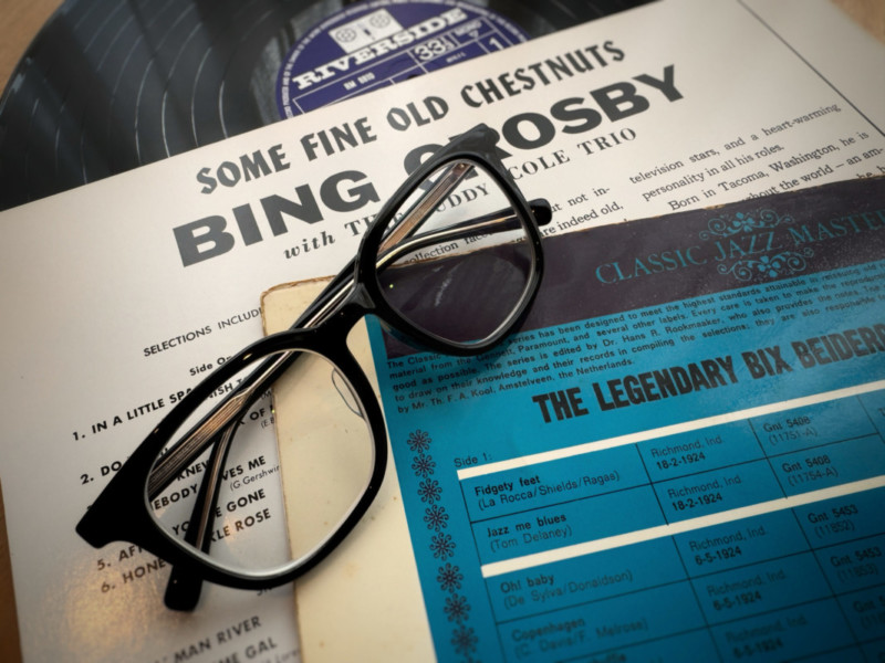 SWINGJAZZの掘り出し物をレコード屋で見つけて、仕事用メガネを新調してきた。