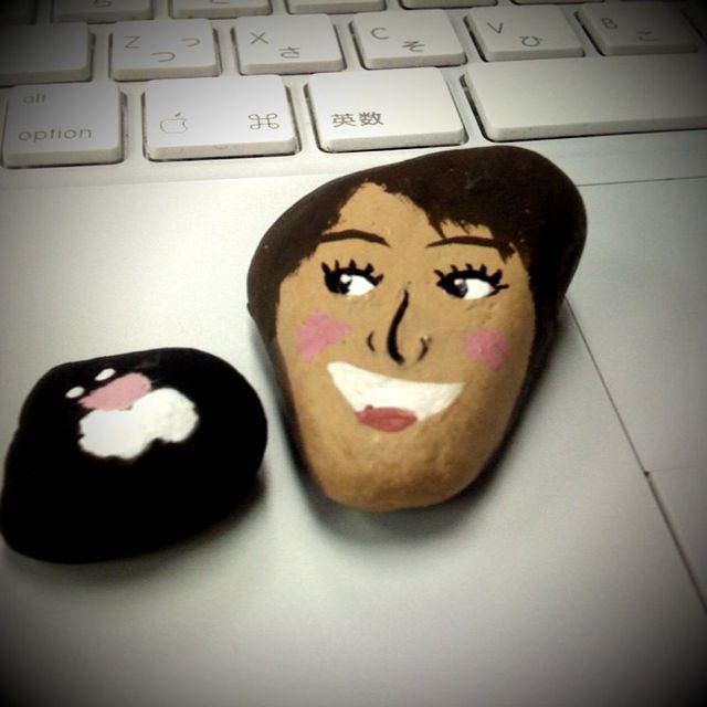でもなんだろう、なんだか幸せ、小石アートは机の上で書類を抑えてくれてます。さこちゃんと俺寄り添ってます♪