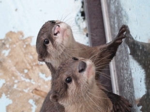 なにがカワイイってエサを貰えるのを知ってるから、手を出す場所もわかっているようで、ちっさい隙間からカワユイカワウソの手がピョコっと出てきます。
