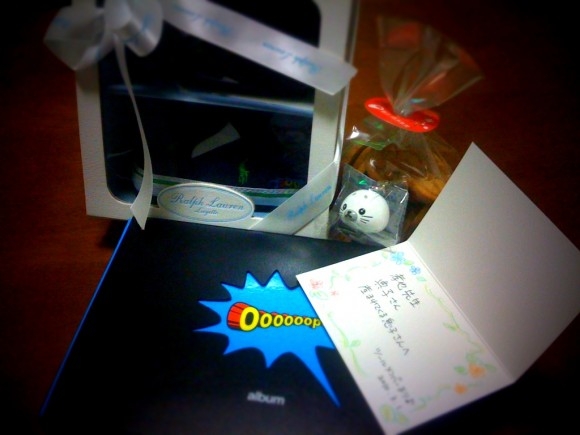 いや〜、超カワイイアメコミ吹き出しが入ってる写真アルバム!すげ〜こんなの売ってるんだ〜!息子の写真とかいれちゃお〜。それから、ツールのリーダーから個人的に頂いたお祝い、