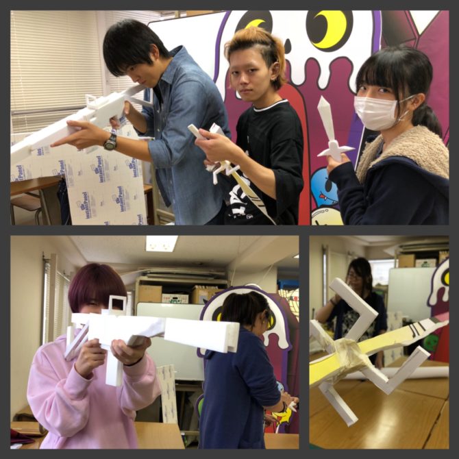今年もデパートのハロウィン装飾をうちのクラスの子達が頑張ってます(^^) ただクリエイティブがあり余って端材で関係ない武器を作り出す…先生そういうの嫌いじゃないよ(... -