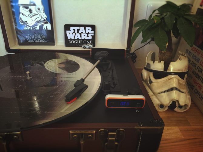 リビングのレコードデッキにFMトランスミッターを付けたら家中のラジオでレコードが聴けることに今更気がつきました、快適です。 #starwars #スターウォーズ #レコード...